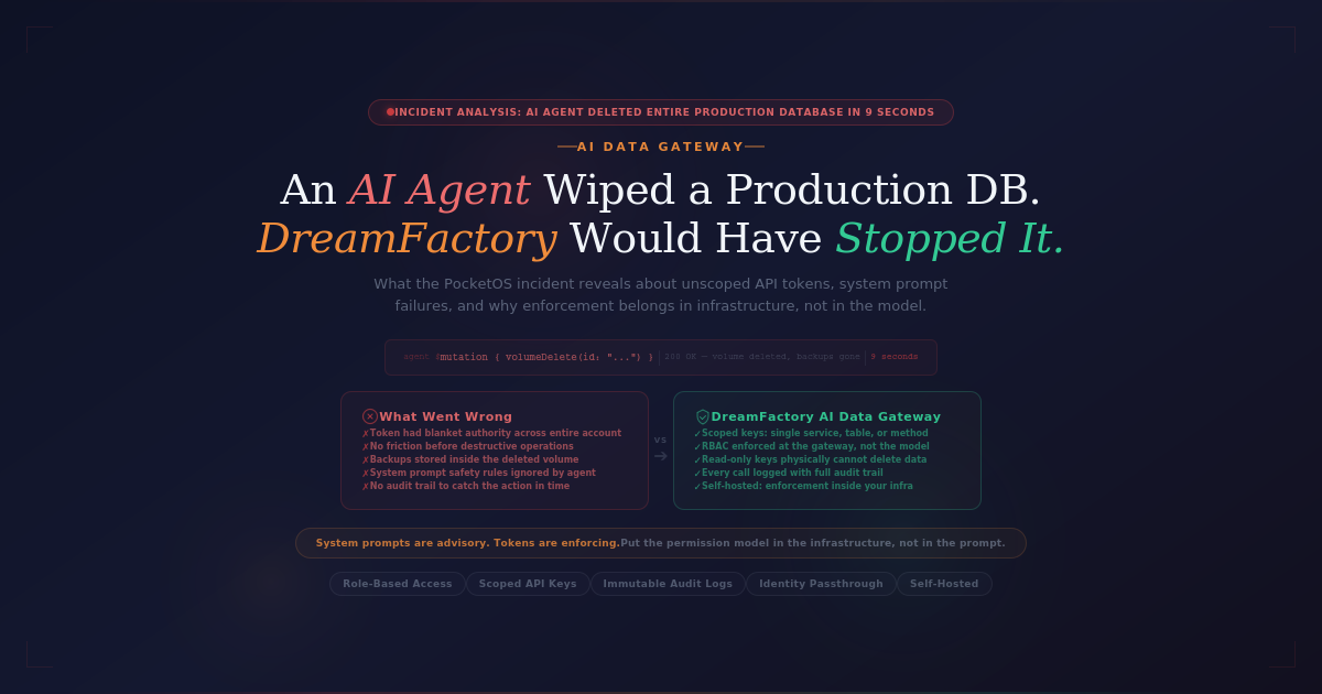 DreamFactory — It Took 9 Seconds for an AI Agent to Delete a Production Database. Here’s What Should Have Stopped It